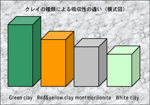 クレイには、吸着性、吸収性、イオン交換性があるというが、一体どういうものなのか。理解しづらいので調べることにした。 まず、吸着性。吸着とは、「吸い付くこと。」「二つの相の構成成分の界面における濃度が、その相の内部における濃度と異なった状態で平衡に達すること。界面で濃度が大きくなるときを正吸着、小さくなるときを負吸着といい、吸着現象の多くは正吸着である。」わかったようなわからないような……。固体と溶液で考えた場合、「溶液の成分が固体表面に濃集し、反対にその成分が溶液中から取り除かれる過程」とも書かれている。つまりは、クレイを使用することにより、クレイが何かを吸い付ける性質をもっているというわけである。簡単にいってはみたものの仕組みがよくわからない。さらに調べてみると粘土鉱物の表面は帯電しているので、物質の吸着が可能であるらしい。それらのクレイの性質からパックなどにより皮脂、老廃物を吸着できるのではないかと思われる。 次に吸収性。無機物については、「電磁波や粒子線が物質中を通過するとき、エネルギーや粒子が物質に取り込まれ、その強度や粒子数が減少すること」とあり、有機物については「生体が細胞膜などの膜状物を通して物質を内部にとりいれること」などと書かれている。つまり、クレイ自体の「吸収性」は電磁波、粒子線などのエネルギーを吸収するということであり、クレイを肌につけることによって、クレイの吸収性が発揮されるというわけではない。しかし、生体膜を持っている私たちは、クレイのミネラルを体内に「吸収」するというわけであろう。それにより、皮膚側の不足しがちなミネラルを補給し、皮膚の正常な代謝を促すということがいえそうだ。 次にイオン交換性。粘土鉱物の表面は、負または、正の電荷を持っていて、その電荷と反対符号をもつ陽イオンの吸着が起こるそうだ。吸着イオンをもった粘土鉱物が異種イオンとの接触で瞬時に交換反応が起こるとのこと。皮膚表面の皮脂や老廃物などは陽イオンに属しているのでそれらがクレイに吸着されると考えられるのではなかろうか? ちなみに、吸収性はイライト(グリーンクレイ>レッド&イエロークレイ)、モンモリオナイト、カオリン(ホワイトクレイ)の順に富んでおり、吸着性は、モンモリオナイト、イライト(グリーンクレイ>レッド&イエロークレイ)、カオリン(ホワイトクレイ)の順となっているとのことだ。